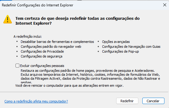 13) Acesse "Resetar Configuração Padrão Internet Explorer