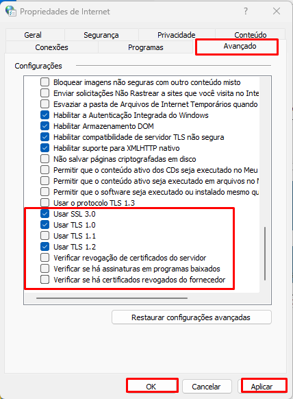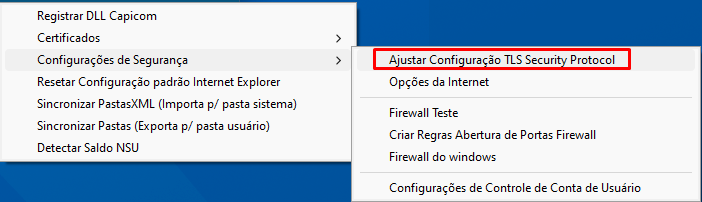 7) Clique em Configurações de Segurança>Ajustar Configuração TLS Security Protocol