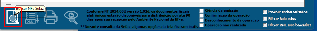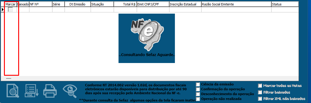 C) Selecionar todas as NFe da aba Notas Fiscais que aparece sem baixar