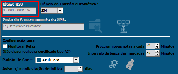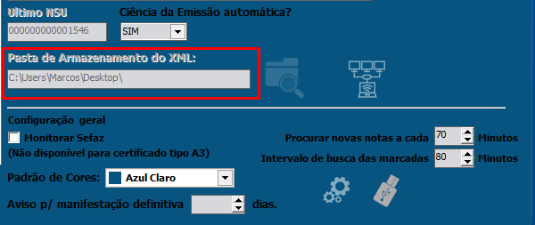 I) Alterar o caminho do diretório que salva o XML da aba Configurações