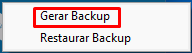 A) Fazer backup dentro do Sistema em um ícone com desenho de pen drive que fica ao lado da Engrenagem da aba Configurações