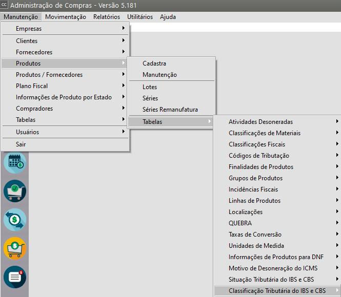 Para visualizar o cadastro das Classificações Tributárias do IBS e CBS acesse o menu Manutenção>Produtos>Tabelas>Classificação Tributária do IBS e CBS