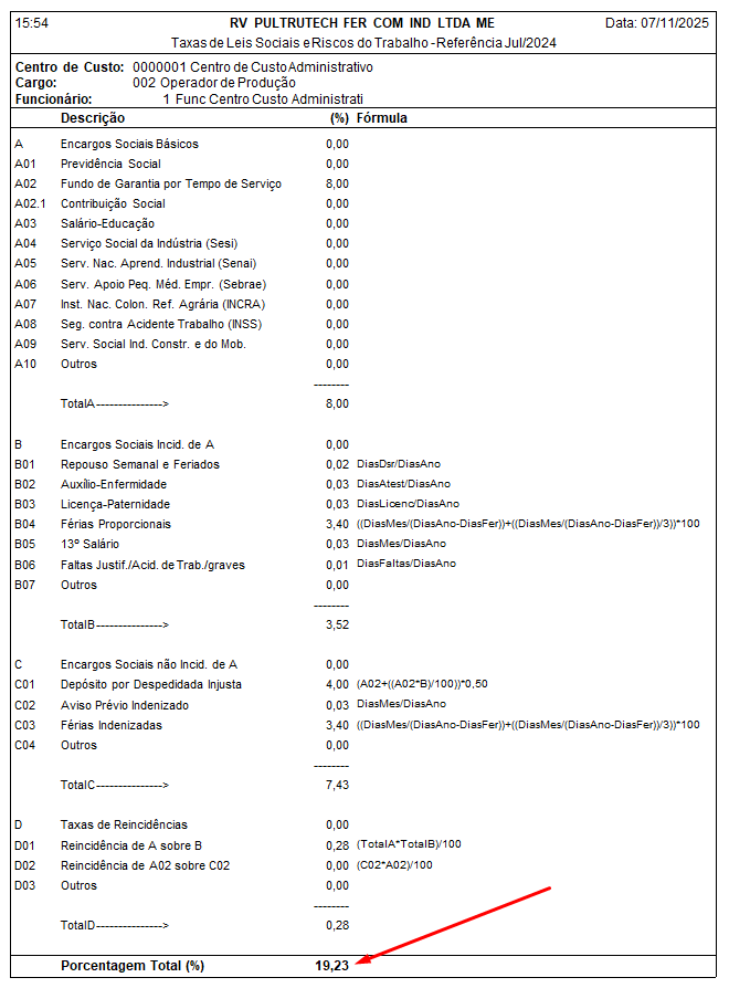Relatório de Taxas de Leis Sociais e Riscos do Trabalho