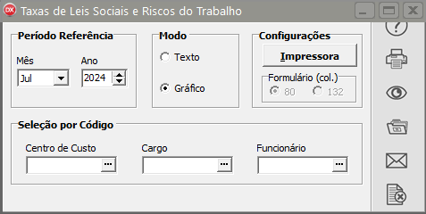 - Seleção por - Centro de Custo, Cargo ou Funcionário - campo não obrigatório