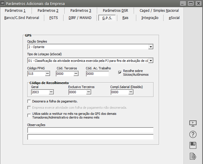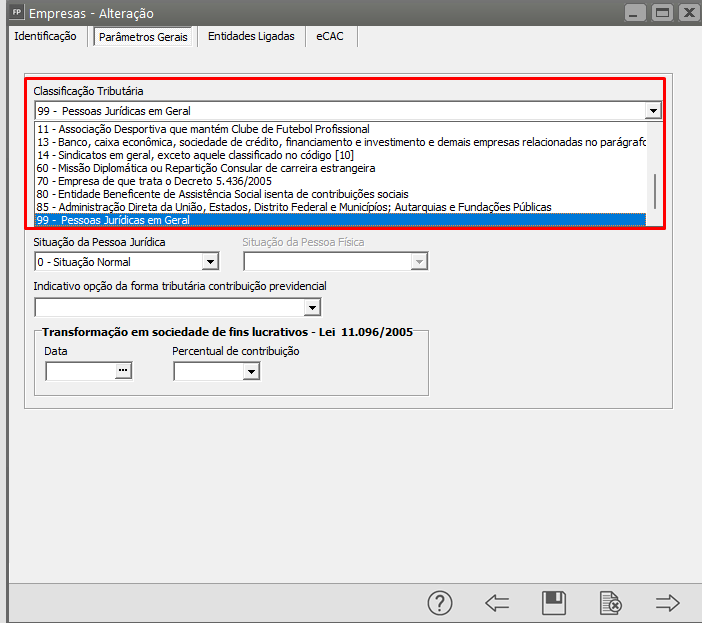 - Indicativo da Opção da Forma tributária Contribuição Previdencial