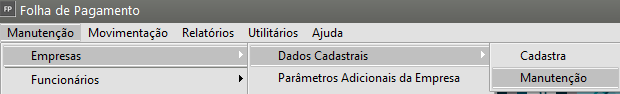 Acesse o menu Manutenção>Empresas>Dados Cadastrais>Manutenção