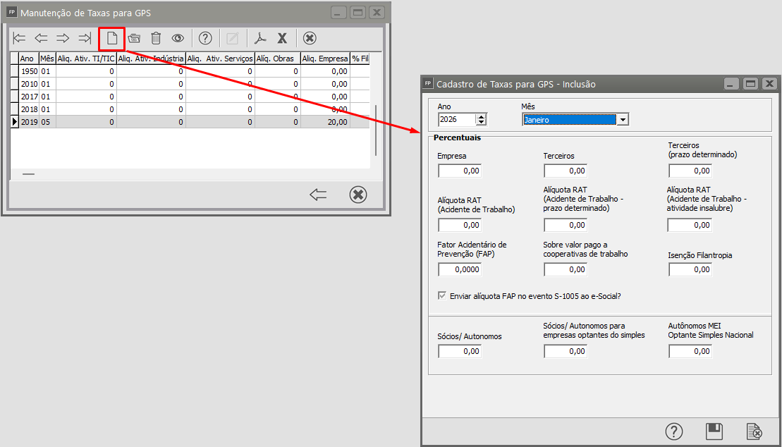 Feche a tela do Cadastro de Taxas para GPS e em seguida clique no botão Novo