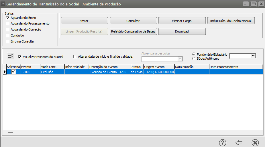 - O S-1299 fechamento só poderá ser enviado se o S-1200 retificação for concluído com sucesso.