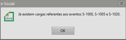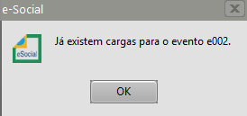 Se não houver carga gerada o Sistema irá gerar a carga, se já existir a carga no Gerenciamento do eSocial o Sistema dará mensagem