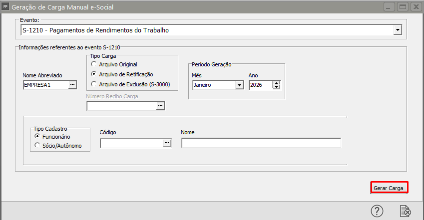 Geração Manual de Carga para ser enviada ao eSocial