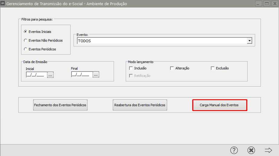 Clique no Botão "Carga Manual dos Eventos"