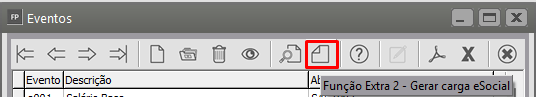 Clique na Seta Avança e em seguida no Evento da geração da Carga, agora clique no botão Função Extra 2 - Gerar Carga eSocial