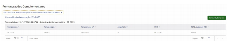 Isso ocorre porque o FGTS Digital entende que o valor do 13º Salário informado, corresponde a uma remuneração lançada no eSocial APÓS O ENCERRAMENTO DO CONTRATO, que possui reflexo na indenização compensatória. Nesses casos, o próprio FGTS Digital realiza automaticamente o cálculo da indenização compensatória sobre esse valor.
