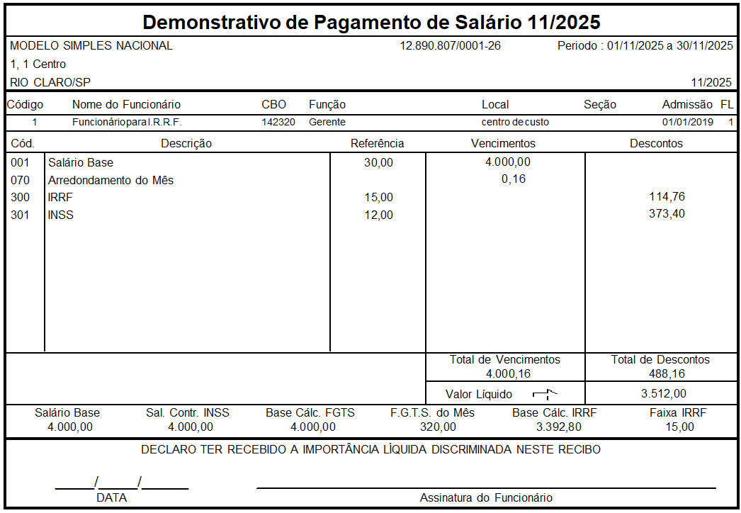 R$ 4.000,00 - R$ 607,20 = R$ 3.392,80