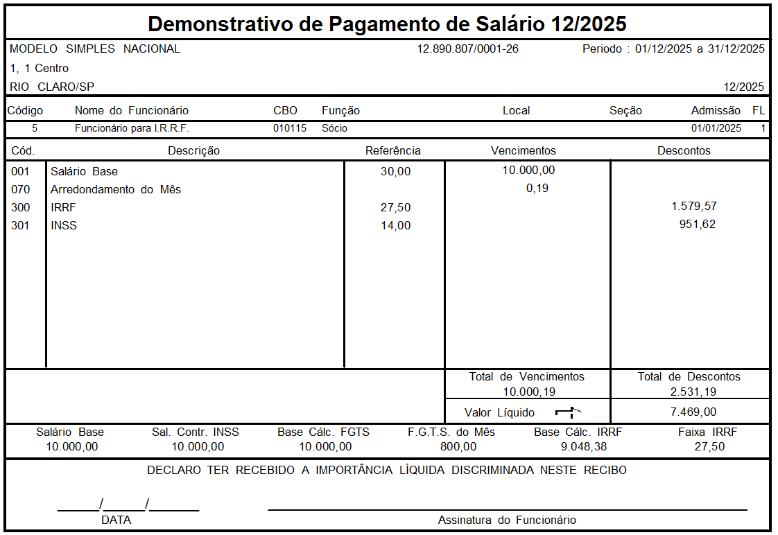 Exemplo 3 - Rendimentos tributáveis maior que R$ 7.350,00: