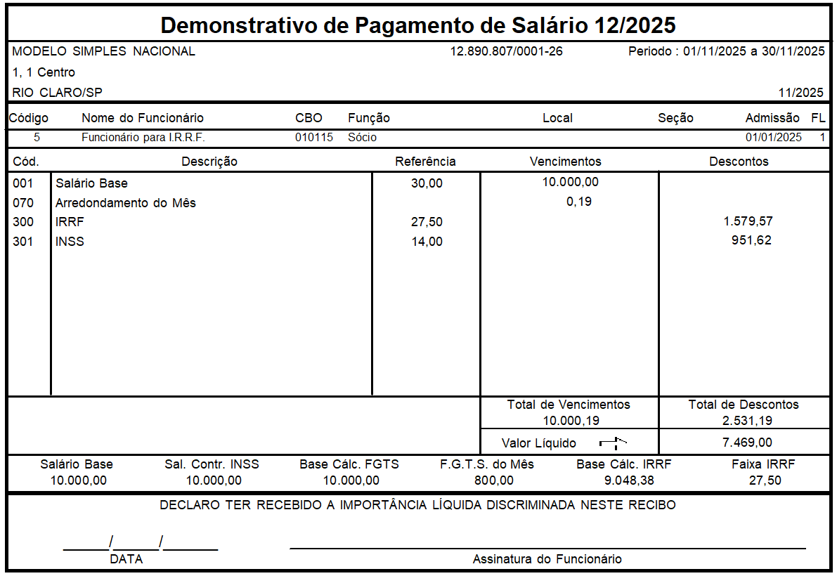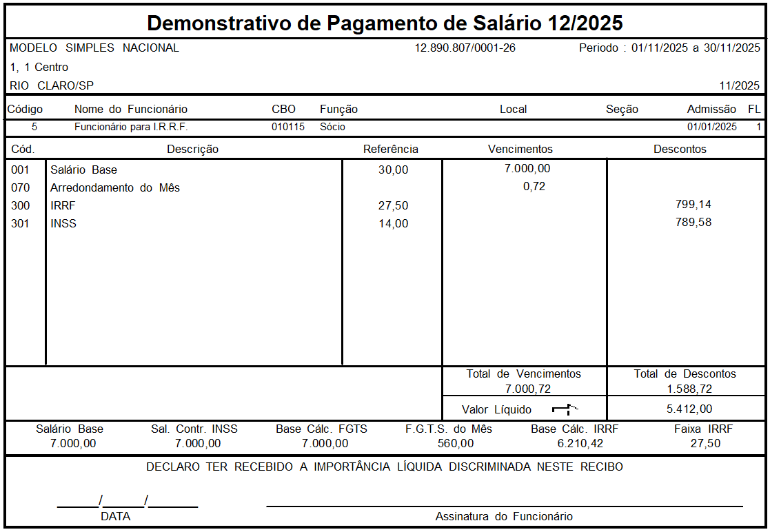 IRRF a pagar: R$ 799,14