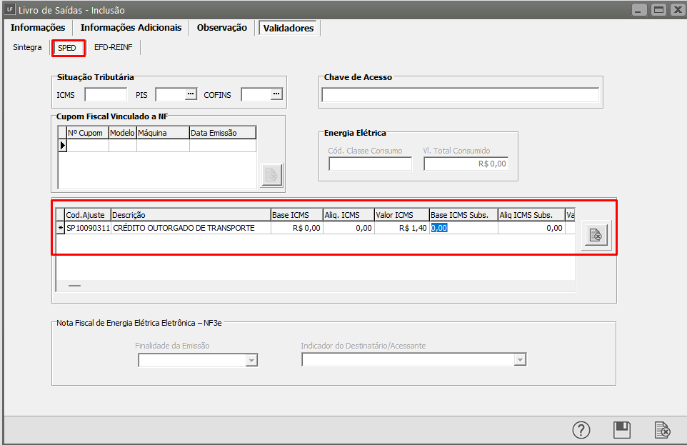 5. Esse valor encontrado gerará informações na ABA Validadores no livro de Saídas > Ajustes.5