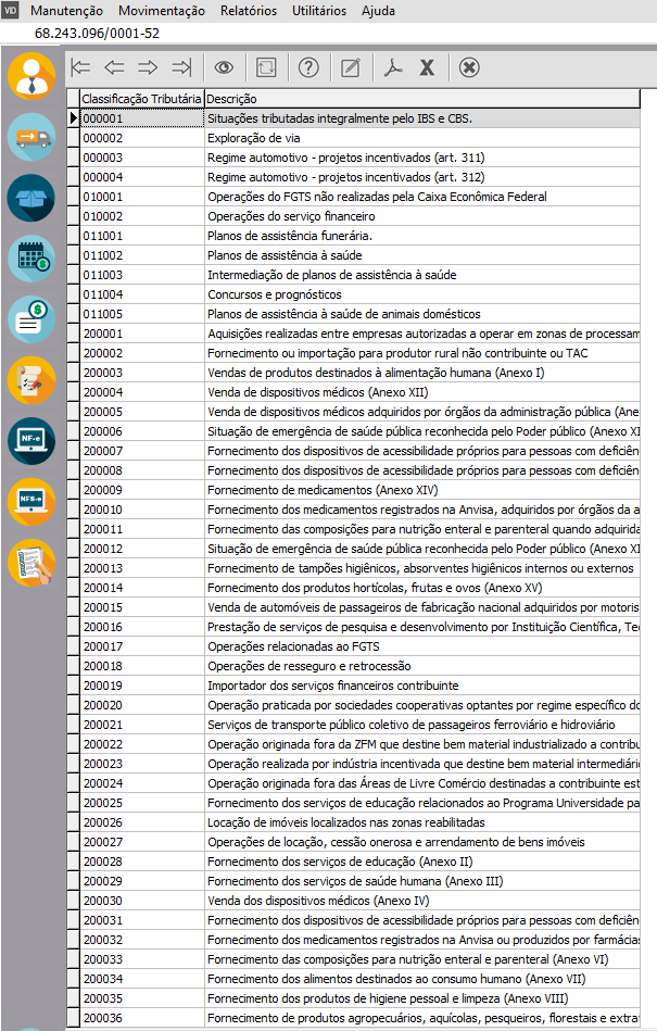 4) Cadastro dos Códigos de Situação do IBS e CBS e Classificação Tributária do IBS e CBS