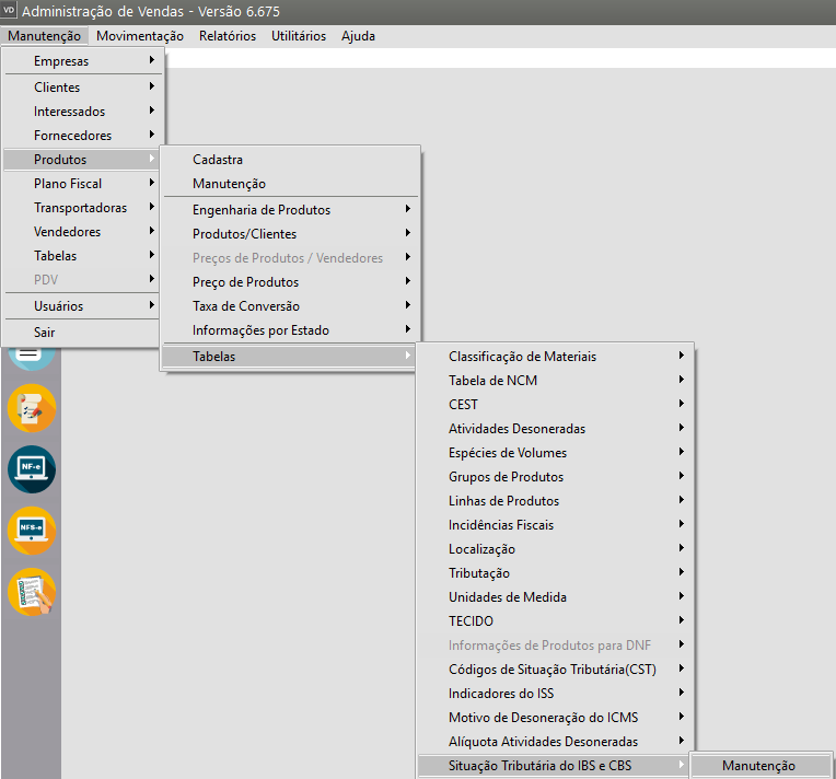 Para visualizar o cadastros dos Códigos de Situação Tributária do IBS e CBS e a Classificação Tributária do IBS e CBS acesse o menu Manutenção>Produtos>Tabelas