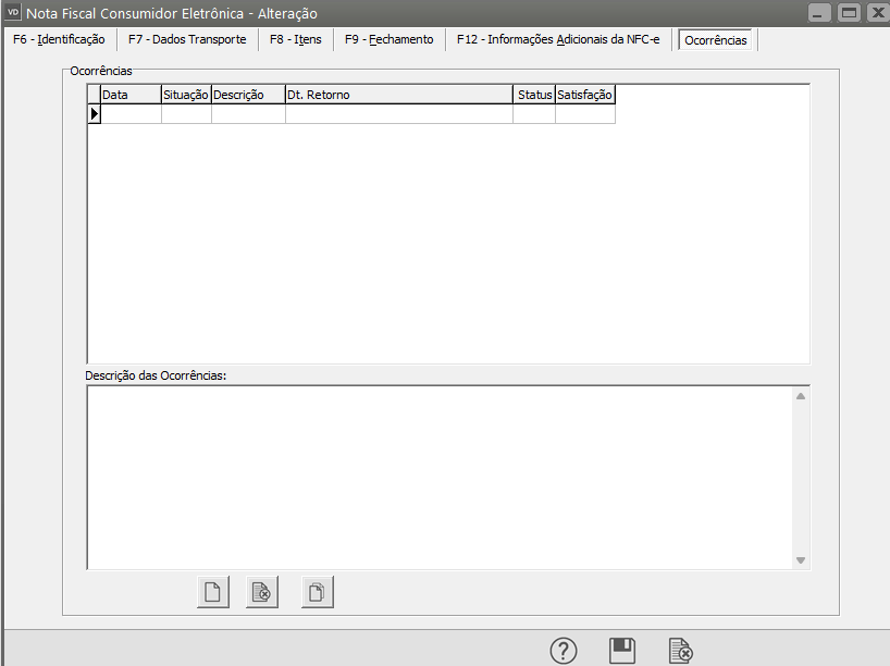 Informe as ocorrências relativas a Nota Fiscal do Consumidor Eletrônica que você está cadastrando