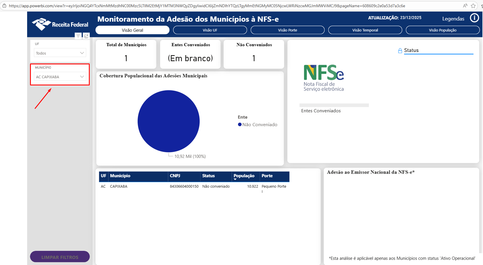 Em seguida acesse "Monitoramento da Adesão dos Municípios à NFS-e"