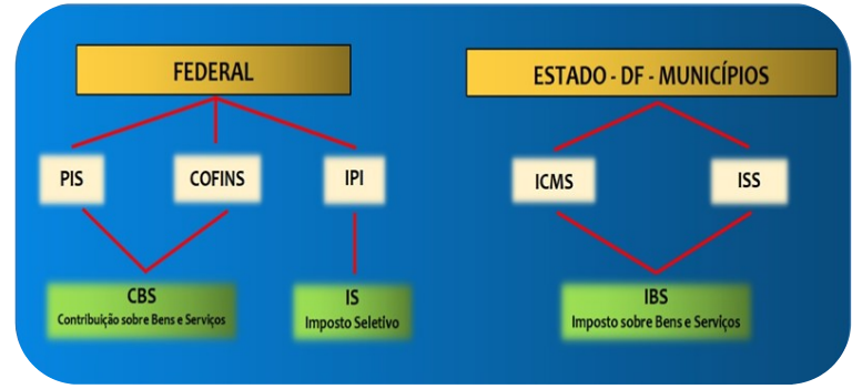 A Reforma Tributária criou um IVA (Imposto sobre Valor Adicionado) Dual, composto pela CBS (Contribuição sobre Bens e Serviços) e pelo IBS (Imposto sobre Bens e Serviços), e também o Imposto Seletivo (IS), para substituir os tributos PIS, COFINS, IPI, ICMS e ISSQN.