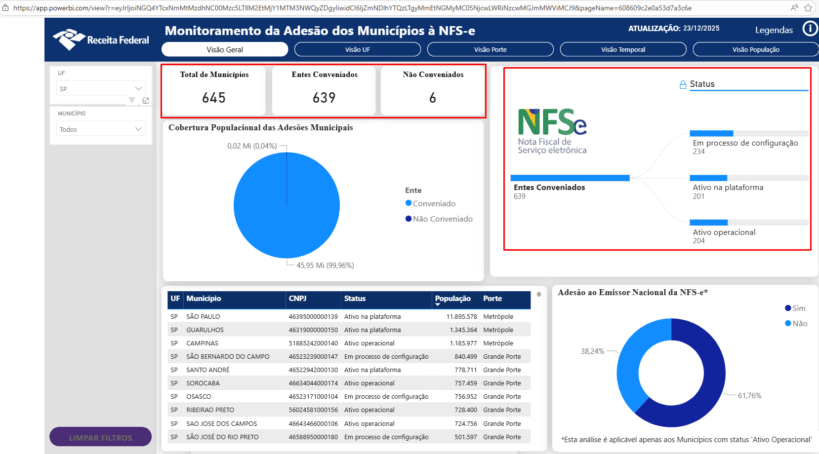 Monitoramento das Adesões à NFS-e — Portal da Nota Fiscal de Serviço eletrônica
